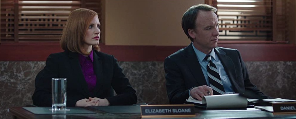 An influencial DC lobbyist joins a company promoting a bill to restrict the purchase of automatic weapons, while her previous employer is hired to lobby against it by those citing the 2nd Amendment in their support. As she begins to achieve some success her opponents decide that the only way to win is to discredit her.