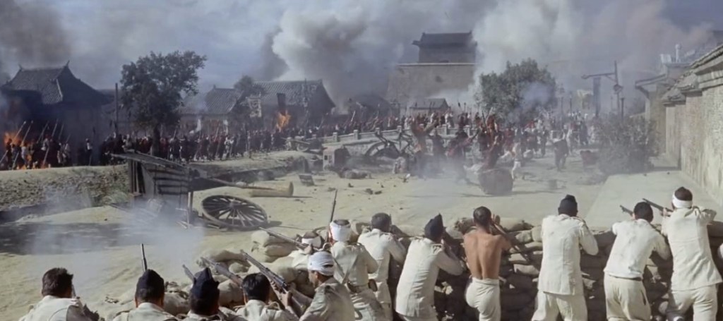 | Content | A number of pitched battles between the opposing sides, with much rifle fire and some explosions. Moments of tension as the beseiged discuss possible outcomes. Some romance between a Russian countess and the American major. Scenes in the Chinese court as the Boxers are assisted. No nudity, drugs, sex or serious drinking. | ||
