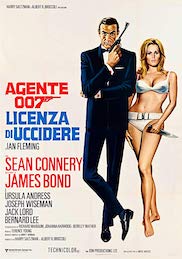 Bond visits the Univeral Exports office and meets with M and Miss Moneypenny, he gambles in the casino in London where he meets and has a sexual encounter with Sylvia Trench. Once in Jamaica he is waylaid by a fake chauffeur and by a woman spying for the villain, but who in the end cannot resist him. There is a car chase on a Jamaican hillside and much time spent in the villain’s lair as Bond and Honey Ryder are alternately pampered and imprisoned, before the final set piece in Dr No’s control centre. So some violence, implied sex and partially undressed ladies. Also smoking and drinking.