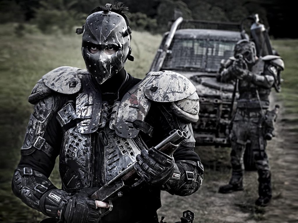 Content: No sex or nudity, or drugs or drinking. However a great deal of spatter, as zombies are shot mainly with handguns and a shot gun. The most effective way of dispatching them is by shooting them in the head – drastic with the shotgun. The crude laboratory in which Brooke is held is particularly unpleasant, the zombies moan and shake and the mad scientist uses pointy objects to inject them and to remove fluids. The paramilitaries are clad in full body armour including helmets and gas masks making them particularly threatening. The zombies used to fuel the truck (don’t ask) are particularly gruesome.