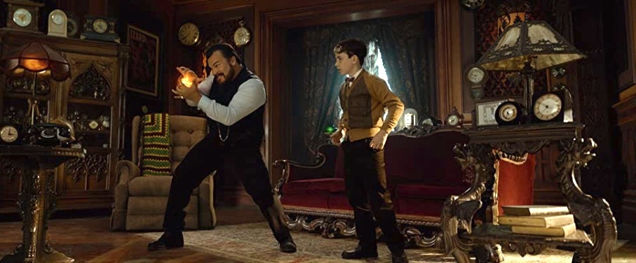 Content: No nudity or sex, or drinking or smoking. Despite the fairly light tone of the movie there are subjects which could frighten children, including demons, animated mechanica and raising people from the dead. The house itself is full of tricky stuff, and tatty chair which acts like a dog, accesses to strange rooms and a lot of clocks. Lewis also has the usual new boy problems at school apparently making friends with a girl by the end.