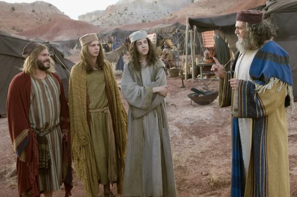 Elevator Pitch: Zed and Oh are a couple of prehistoric hunters who get thrown out of their village for eating from the forbidden tree. Out in the world they are enslaved by a variety of slavers and end up, having met some biblical characters in the city of Sodom where they meet up with a couple of girls they fancied back in the village, who have also been sold into slavery and, unless someone can do something, are due to by sacrificed as offerings to the gods because they are virgins. On their side is the fact that people think Zed is “The Chosen One”, but chosen as what?