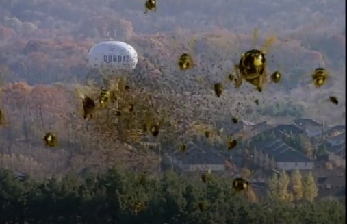 Elevator Pitch: The small Canadian town of Dundas is plagued by a swarm of genetically altered wasps, causing many of the population to die of their stings while the survivors mill about in confusion. Co-incident with the attack is the preparation for a cook off of hamburgers, which we know the insects feast on. Additionally an insect exterminator only survives by injecting himself with an antidote and thereafter becomes central to the populations attempts to survive.