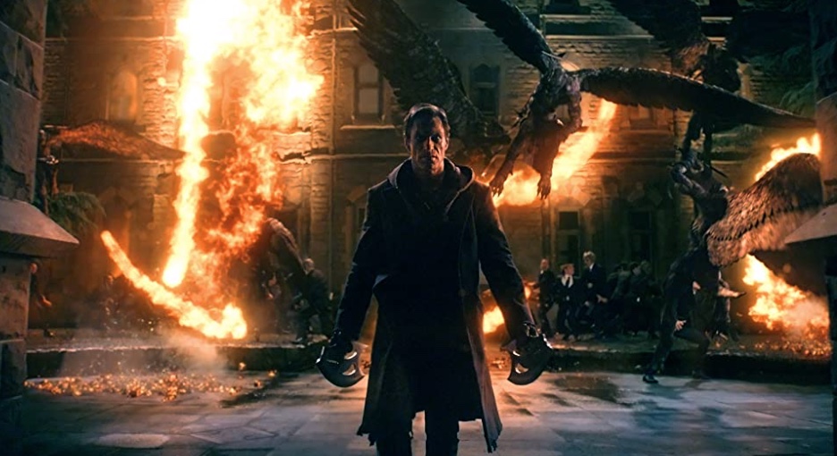 Content: No sex,, nudity or much else of interest. What there is is a whole load of fight scenes as the gargoyles and Adam fight demons who also seem to be winged at times, but always when killed shoot about in a river of fire. Sometimes the gargoyles are killed which result in them ascending into the clouds in a silver beam. In Naberius’s laboratory his chief scientist is seen trying to reanimate a dead rat in a very elaborate transparent tube, and succeeds. We see the legion of dead human bodies each secured in a sort of harness all in a vertical framework which seems to go down for ever.