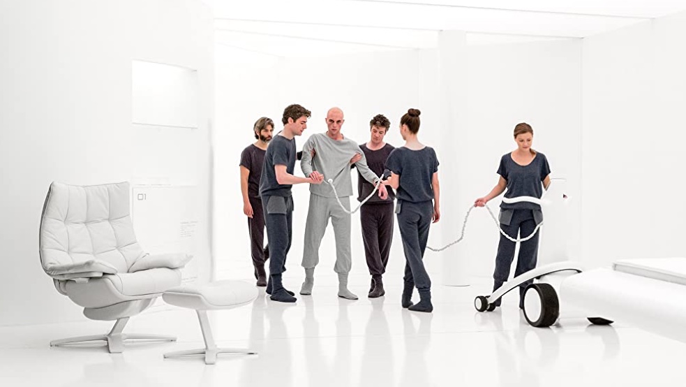 Content: There is quite a lot of sex but no revelatory nudity. In order to move the plot forward there is a lot of voice over. We see much of Marc’s life mainly in flashback once he is conscious in the future. He spends most of his time on a bed floating on nothing gradually becoming more animate, but even getting together with Elizabeth does not work for him. He only gets to look out of the window once seeing people running on a path between palm trees. He destroys his connection to the machine when agitated. Quite unpleasant. There is a vault with hundreds of cryogenic frozen bodies in containers. Things don’t look great for them.
