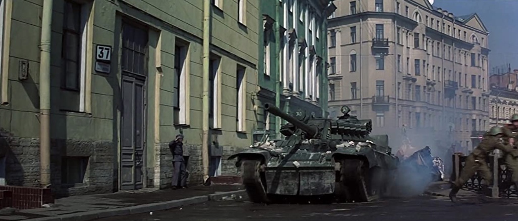 Content: There is no nudity and a bit of implied sex. The shadowy figures in the title sequence may be the most sensual in the film, even though Xenia kills people by squeezing them with her thighs. We see Bond and Trevelyan carry out the raid in Russia where Trevelyan in captured and apparently shot. There are a number of large explosions. Maybe the high point in the whole film has Bond chasing a villain in St Petersburg driving a tank. Some scenes on the Janus armoured train (inspired by Doctor Zhivago?) which is destroyed.
