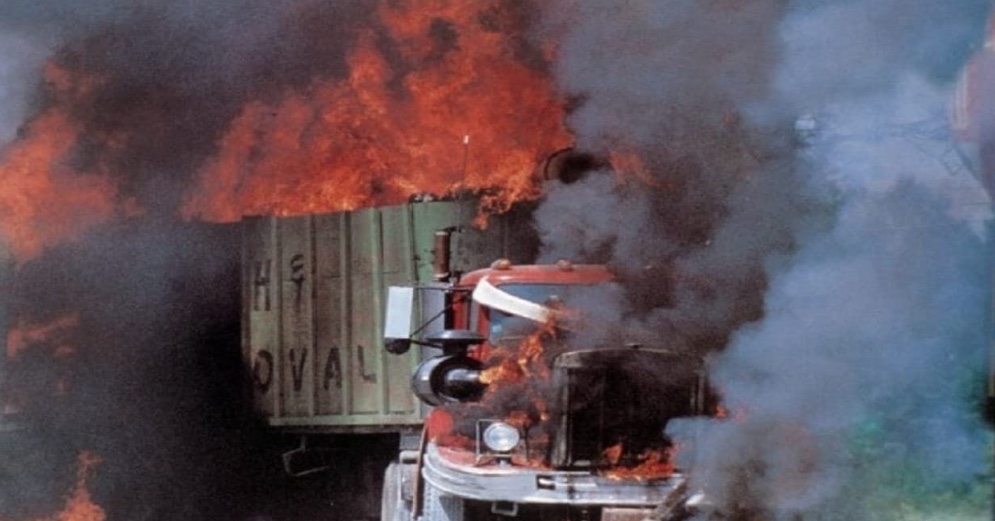 Content: No sex or nudity although the parolee and the hitch hiker get together, unconvincingly. A bridge opens with traffic on it. The coach of a baseball team is killed by a coke machine which fires cans at him. The boy cycles through the town, seeing many people killed by machines. He is chased by a lawnmower and a truck. The boss of the truck stop is unpleasant to the parolee. Once the trucks get going in a circle round the restaurant everybody inside takes it easy. A newly married couple make it to what might be a safe place and join the group. Some trucks are disabled with RPGs.