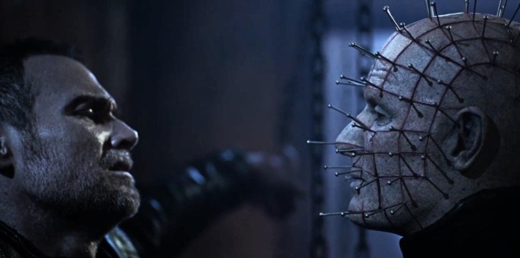 Content: No sex but just a bit of partial female nudity. Most of the film is concerned with the presentation of hellish judgement, with characters ending up on a table to be slashed about by a character known as the surgeon. The detectives meet in the police station and go out to investigate the murders. The various denizens of hell including Pinhead are seen but appear to have minor roles in this presentation, as do the puzzle boxes which have in the past connected humans with hell. But the chains and hooks which pierce and pull people’s skins are seen, particularly in the dispatch of Jophiel.