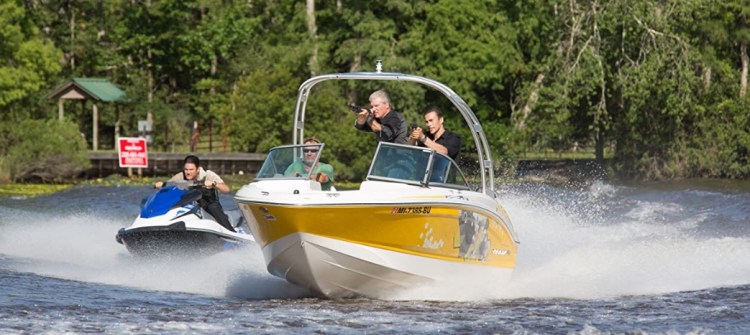 Content: There is no sex or nudity, although Jack and Jenna seen in bed together once. Beer is drunk and there may be a bit of smoking. There is an opening scene where Jack is selling firearms, cleverly avoiding being killed. There is a boat chase with the goodies and the baddies shooting at each other with little effect. There-after quite a few shoot outs with hand guns and machine guns, usually choreographed in an unrealistic way with few deaths or injuries. Jack and Eddie exchange threatening phone calls. Jack and Karen exchange smart dialogue.