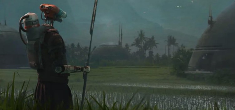 A View of The Creator: I found myself at times wondering who the creator actually is, and just to provide a bit of help, it is probably, Maya Joshua’s wife. Even after reading the Wikipedia explanation, I am just a bit confused by the plot, and have a hunch that there are plot holes. However the machines are absolutely terrific, some straight off the Chris Foss drawing board. You can see the associations with other films, Star Wars, Blade Runner, Apocalypse Now and, surprisingly, Battleship. But despite its lack of originality it is worth a view of you are an SF fan.
