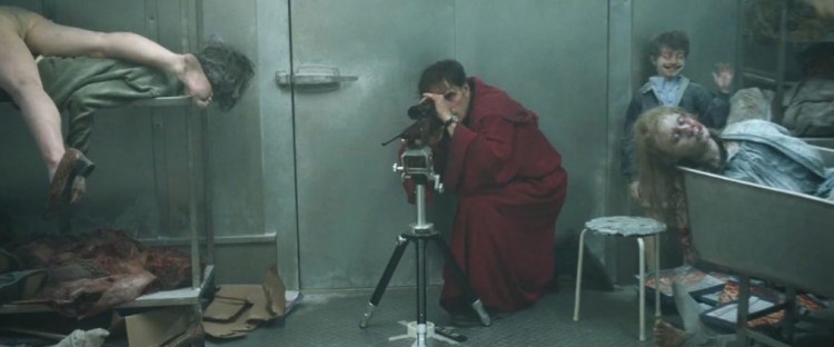 Content: There is a bit of female nudity, which includes Jack marking dotted lines round his girlfriend’s breasts, but no sex. In addition to the actual murders which are unpleasant Jack describes how he comes to need to carry out further murders by showing us a cartoon of a figure walking between street lights. He also stands next to his van with cards which he displays and throws down. The killings are all bizarre in different ways. After the second he keeps having to return to the house to clean up imagined blood. He kills a woman and her sons with a hunting rifle using guidance on how to kill families of deer. The freezer he uses has an internal door, which he finally has to open to align his rifle on the heads of six tied down men. This may be symbolic. Finally there is the descent into hell. This film would be unsuitable viewing for young people.