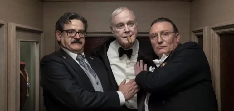 Plot of The Palace: It is December 31st 1999 and the Palace Hotel in Gstaad is holding one of their legendary New Year gatherings. The Manager Hans Kopf gives the assembled staff a lecture on how to make the event a success, and the guests begin to arrive. We meet Mr Crush, who does not have a booking, and does not like the tiny room allotted to him, The Marquise a late of indeterminate years who has a incontinent dog, Dr Lima, who is a plastic surgeon some of whose quite doubtful work also attends, and Bongo, a former porn star. Also present is Arthur William Dallas III aged ninety something and his new wife Magnolia who is twenty something, and arriving a bit later are a gang of Russians with their bodyguards and women plus a number of cases full of money. Some will hope to take advantage of the change in the century and when Boris Yeltsin hands over to Putin, the Russians have a new agenda.