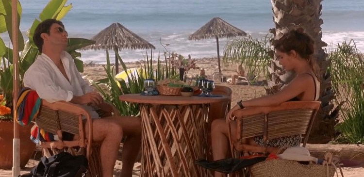 Content: There is implied sex but no nudity and just a bit of social drinking. Angela spends time at her computer, playing games, typing stuff in and using the mouse. She has a desktop which has slots for both 5” and 2 ¼” discs. The exchanges info with her friend by Fedex envelopes. Jack Devlin, the man after her is a creepy Englishman. She gets together with him in Mexico. She calls her former lover, also her therapist who helps her, but he is hospitalised and killed by the villains who alter his hospital records. Angela has her records changed on the police computer so that she is chased by the highway patrol and arrested. She is bailed by a fake FBI man, but escapes and runs away. There is a lot of running. The climax takes place at a computer convention.