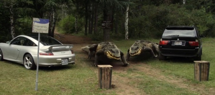 The plot of Lake Placid vs Anaconda: Jim Bickerman, a survivor from the previous Lake Placid misfortunes, helps a boss of a pharma company in her ambition to combine the attributes of a giant crocodile and a giant anaconda. In their large semi-trailer a sedated giant croc has its blood sampled, and giant anacondas are injected. However, the croc wakes up, and creates havoc eventually blowing up the semi-trailer allowing the snakes, and apparently many rapidly growing crocs to escape. Meanwhile a group of young sorority applicants are going through their initiation on a beach and a couple of guys take some out in their speed boat. Sherriff Reba of Black Lake and Will Tull, the Fish and Wildlife man, are out there with firearms, looking for Tull’s daughter, who is one of the sorority girls. The deputy sheriff is also clearing the beaches of holiday makers as the threat heightens. Sarah Murdoch, the pharma company boss and a couple or cohorts are also looking for the anacondas. In this environment girls are chomped by the crocs, and the anacondas squash crocs, people and a BMW.