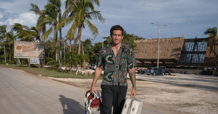 Content: No sex or nudity, some drinking – it is set in a bar after all. Knox. The enforcer appears first naked walking down a street, until he steals a coat off a passer by. It is a weird scene. There are flashbacks to Dalton’s past where he has killed a man in the ring due to rage. We see his car being destroyed by a train. Once in the Road House there are frequent fights which escalate over time. A whole lot of different, real bands play in the Road House, some of them pretty good. Dalton lives on an old boat owned by the bar owner, and when attacked by the gang leader, pushes him over the side where the man is eaten by a crocodile. There are speed boat scenes a bit like James Bond.