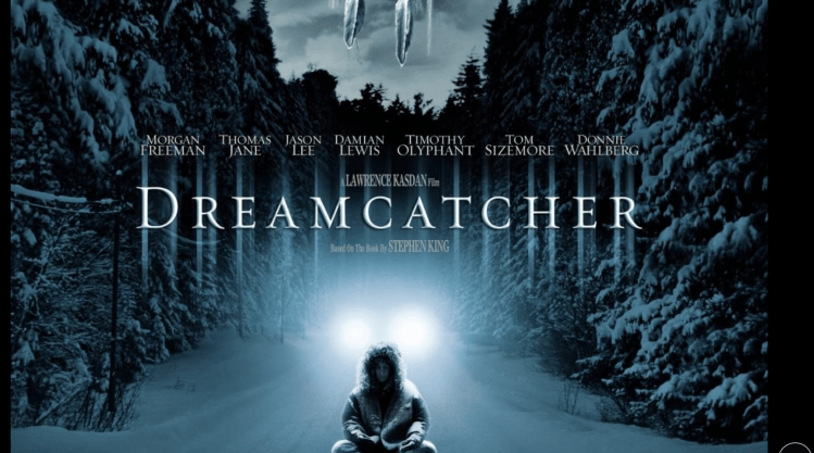 Plot of Dreamcatcher: Four young boys rescue a slightly disabled boy from ullies, and are given telepathic powers as a result. We see them in adulthood using these powers to achieve results which mystify the recipients. The guys meet every year in a cabin in the woods (not that cabin) to renew their friendship and on this year things go wrong. They rescue a guy who had gastric problems who to their horror defecates an alien being like a sausage with teeth. Meanwhile a secret organisation is searching for aliens and has created a no go area, imprisoning the people they find within it. Two of the guys in their truck overturn in the snow, avoiding a woman sitting in the road who we know is also infected. The secret military search for the alien space craft and find it, but it blows up killing some of them. One of the guys, Jonesy, has his body inhabited by an alien adult and with one of the others starts off on a snowmobile to get to civilisation. Henry, who is a doctor, is captured by the secret military, but manages to persuade the second in command onto his side, to prevent mass killings. But things are coming to a head.