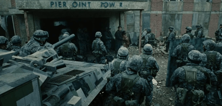 Content: No sex or nudity, apart from Kee briefly exposing herself to show she is pregnant. Some drinking in more or less social contexts. London features, with the government building visited by Theo being in the Tate Modern. Many scenes of people being held in cages and soldiers being aggressive. The Fishes are a small group of political rebels who are involved in an escape from rioters in the forest. They kill Theo’s friend Jasper although Theo and Kee escape in Jasper’s car. At Bexhill on Sea they are involved in an attack by soldiers on a group of machine gun toting refugees, which go in for ages.